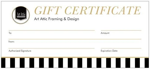 Give the gift of custom framing AND the design experience with a gift certificate from Art Attic Framing & Design!